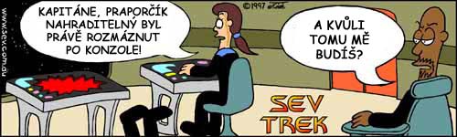 Rád bych vechny skalní fanoušky StarTreku a pro něj typického humoru upozornil na adresu http://strek.pinknet.cz/ Jedná se o překlad tak populárních http://www.sev.com.au/ |